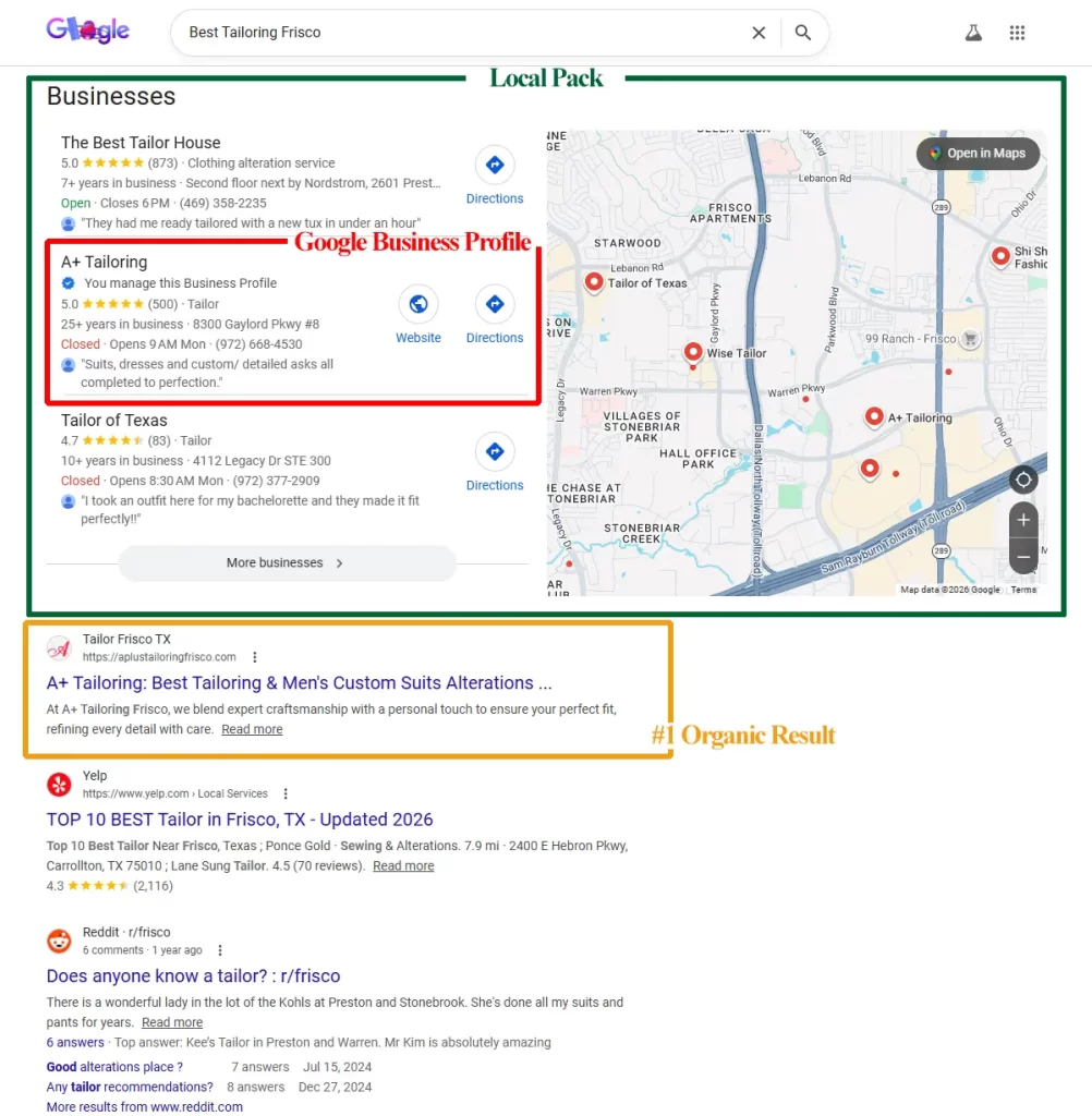 Local Pack (Map Pack) – 지도 기반 지역 비즈니스 검색 결과