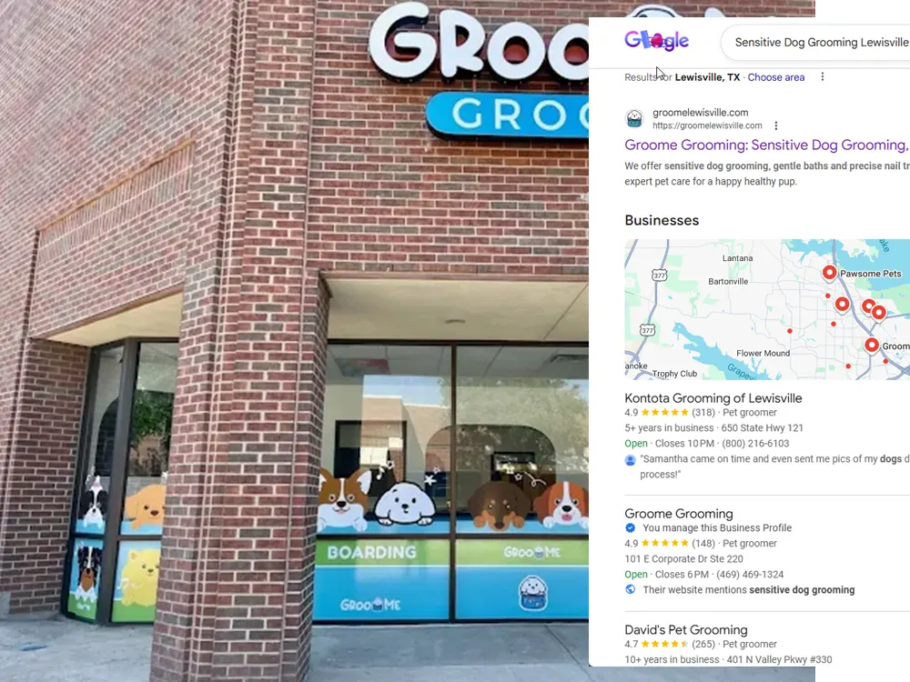 Result: 지역 검색 노출 증가 및 반려견 미용 예약 문의 증가